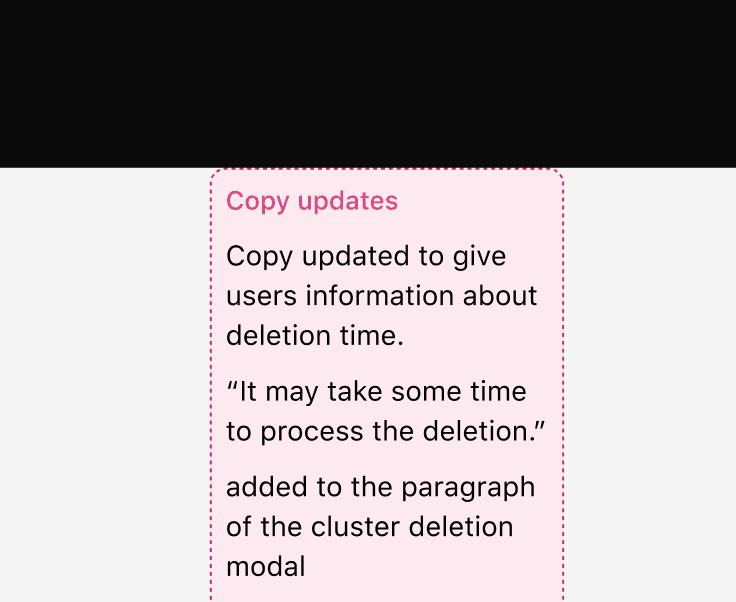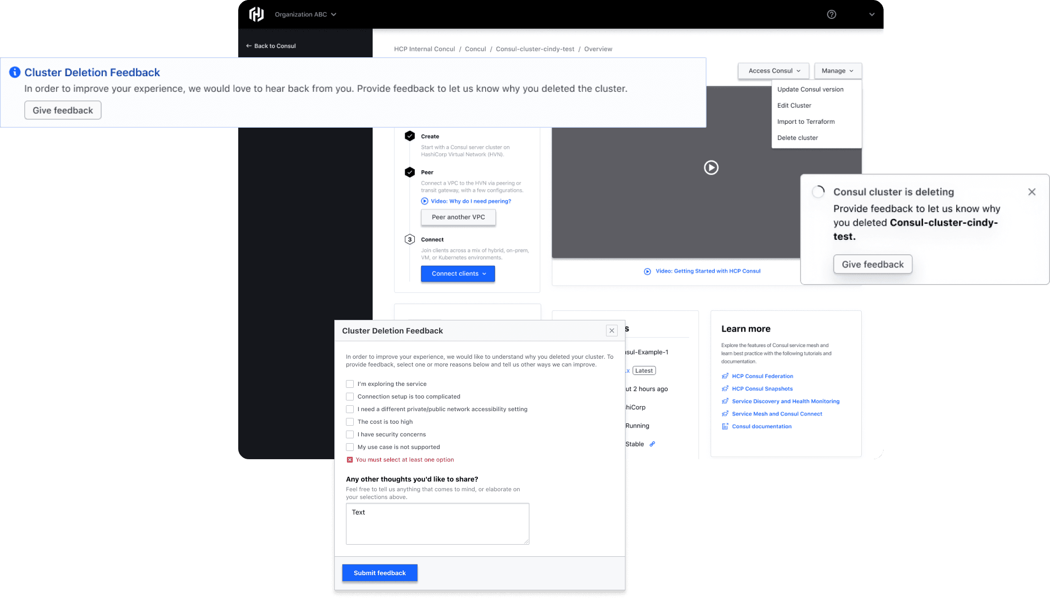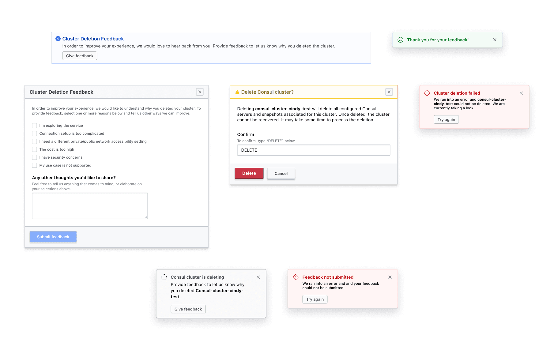 Task: Build a UX experience that collects data on cluster deletion